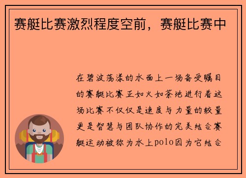在碧波荡漾的水面上,一场备受瞩目的赛艇比赛正如火如荼地进行着。这场比赛不仅仅是速度与力量的较量,更是智慧与团队协作的完美结合。赛艇运动被称为“水上polo”,因为它结合了划船技巧、策略制定和团队配合,...