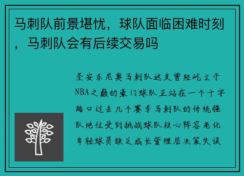 圣安东尼奥马刺队,这支曾经屹立于NBA之巅的豪门球队,正站在一个十字路口。过去几个赛季,马刺队的传统强队地位受到挑战,球队核心阵容老化、年轻球员缺乏成长、管理层决策失误等问题逐渐显现。在NBA竞争日益...